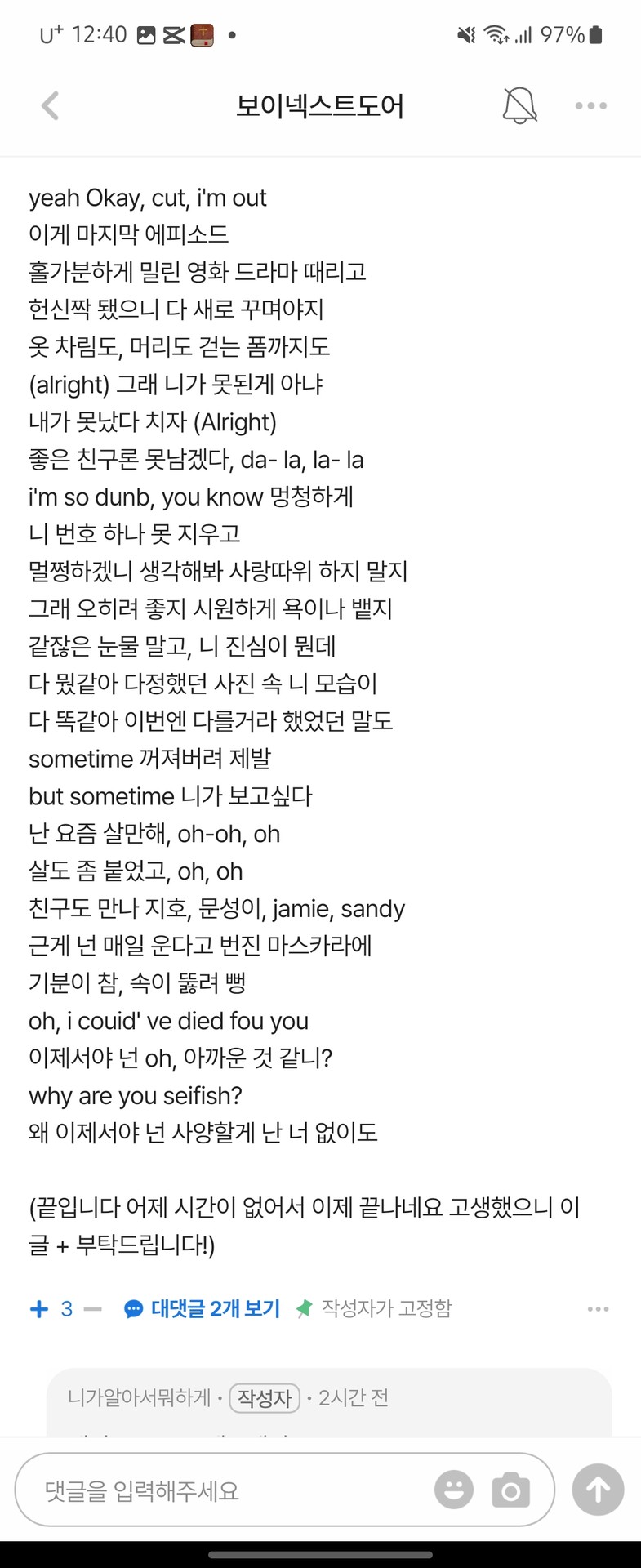 꺼져버려 제발… but sometimes 니가 보고 싶다아아아…