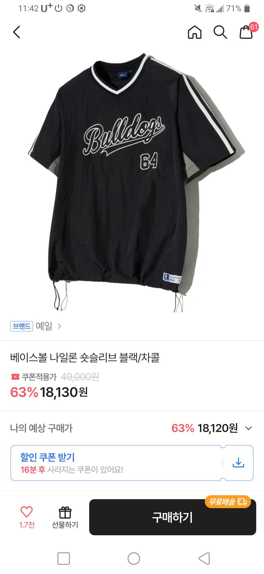 옹..그럼 저거 블랙으로 장바구니에 담아봐야겠다!! 바지는 뭐살까..