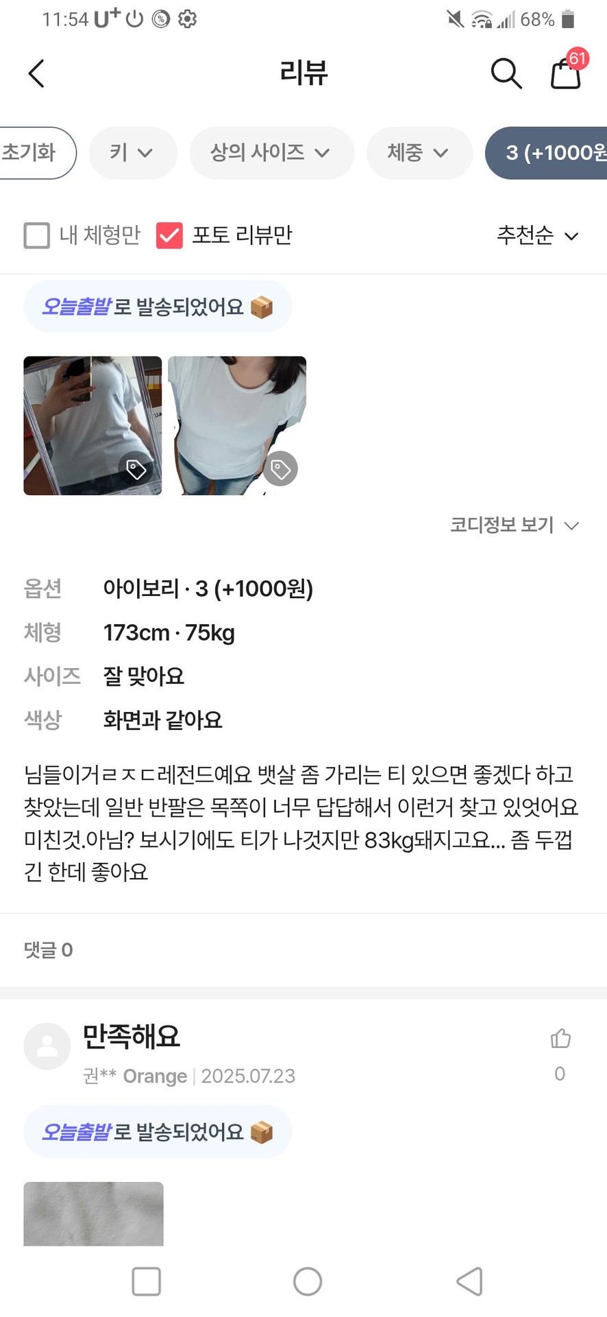너랑 키빼몸 비슷하신 분들 리뷰야ㅏ