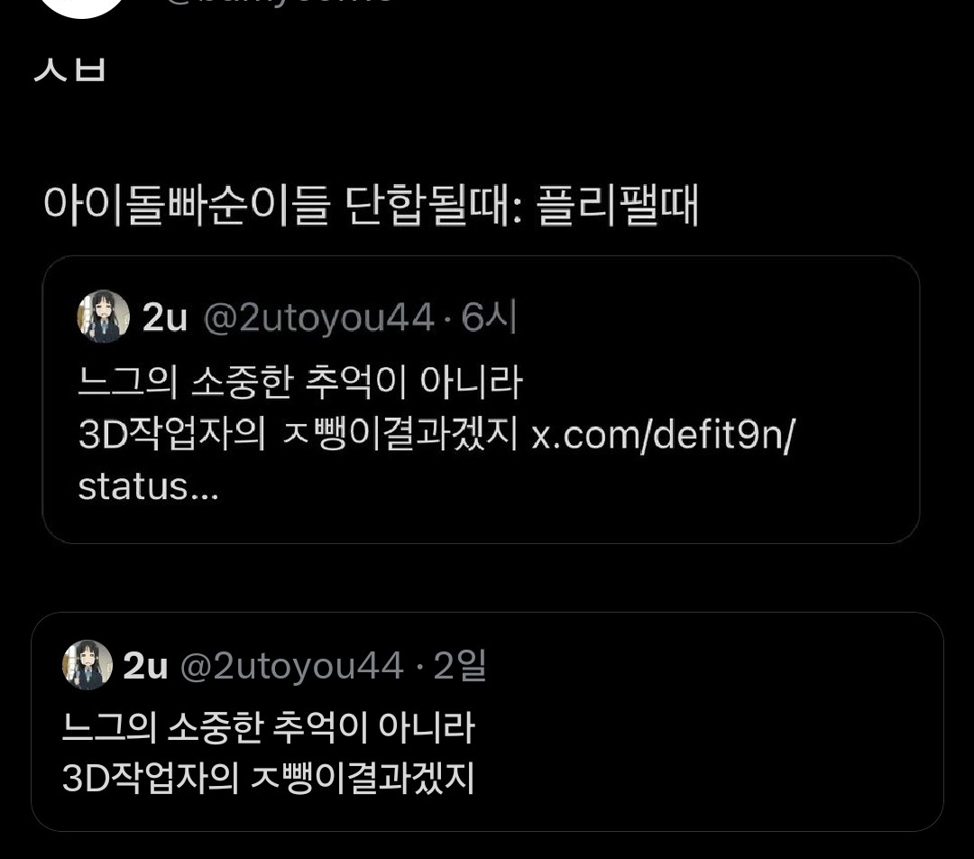 근데 이런 아이돌 좋아하는 느낌이 애니메이션 캐릭터 좋아하는 느낌인가유? 아니면 그냥 아이돌 좋아하는 느낌인가유?